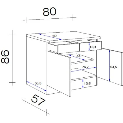 Der 80 cm breite Unterschrank weiß durch eine hochwertige Verarbeitung sowie Materialauswahl zu gefallen und garantiert Ihnen auch auf kleinen Flächen ein Höchstmaß an Stauraum. Dabei verfügt der kompakte Unterschrank neben zwei Drehtüren auch über zwei Schubkästen und ein Einlegeboden.
